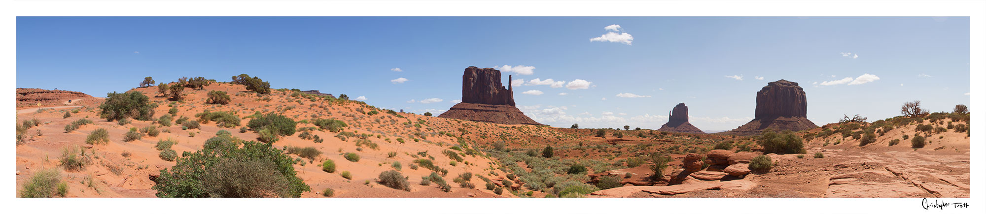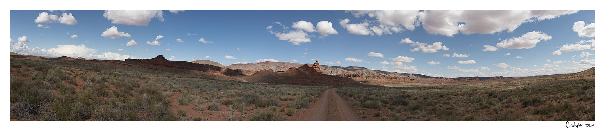 Since I have not  been shooting new images, I go back into my files and find older panoramas that I can use and combine with elements of other images I have taken. I call them composites. For example, if the sky in one panorama is kinda plain, I use a more dramatic sky from another panorama. I shoot my panoramas in a 180 degree swatch, or arch. Each panorama is a stitched image of 6 to 8 overlapping images to achieve the panorama. A panorama is an image that is much more wider than it is tall, like the ones below. I try to edit these composite panoramas so that it’s hard to see how I made the combination of the two or three images into one image.